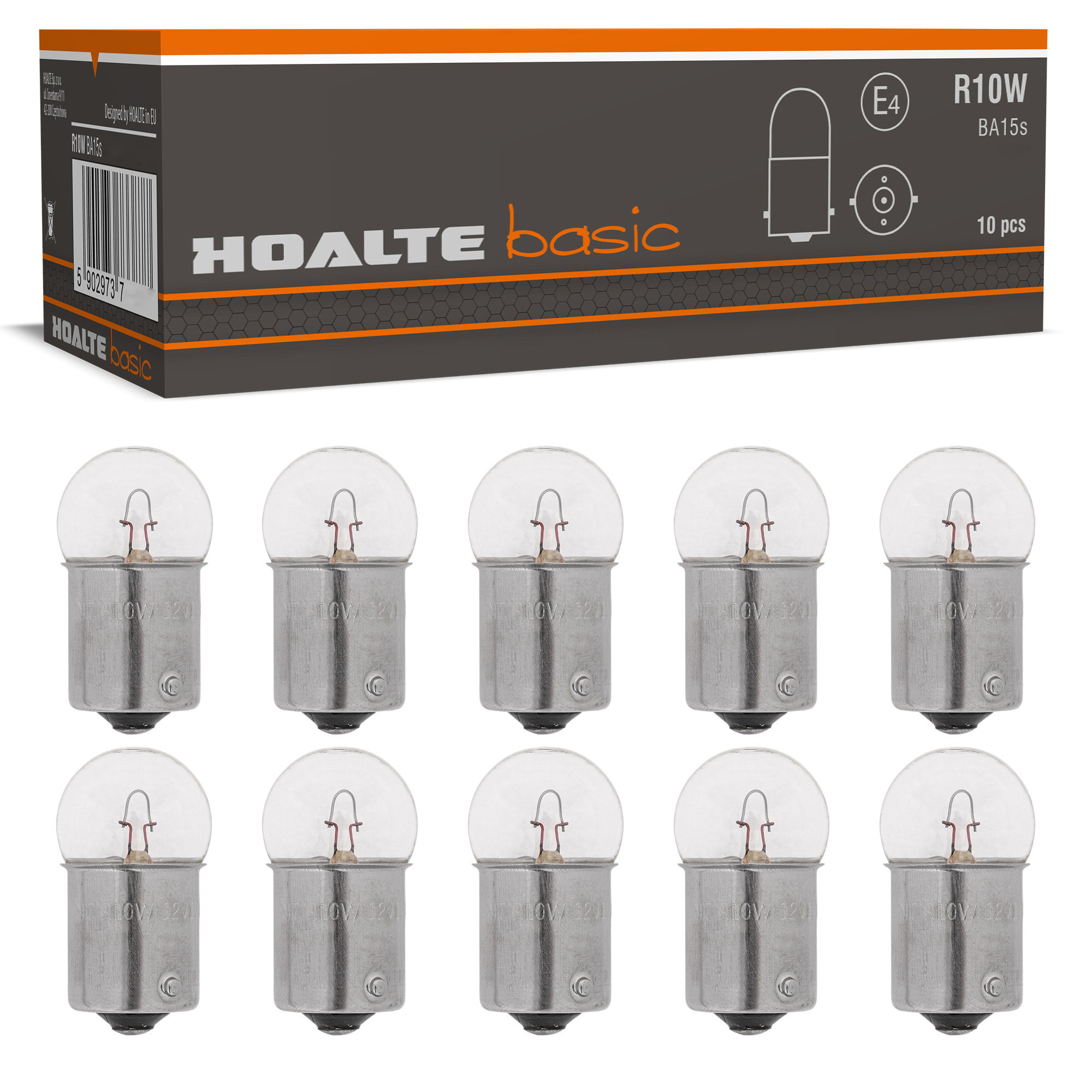 Komplet 10 sztuk homologowanych, pomocniczych żarówek typu R10W z serii BASIC marki HOALTE.